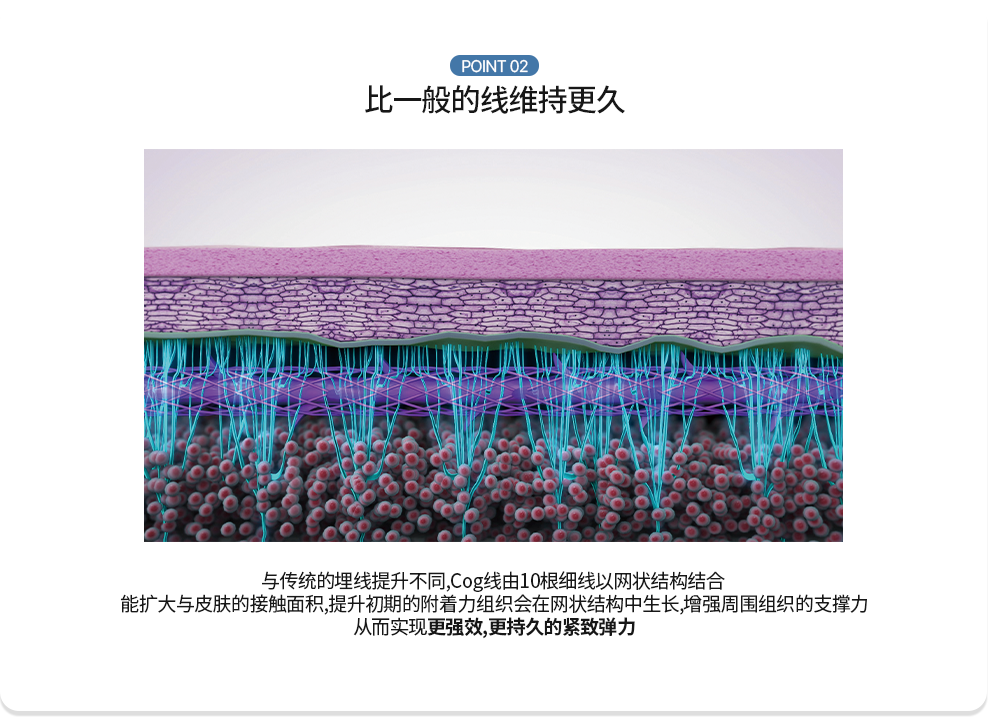 可同时拉提筋膜层,实现更持久的提拉效果