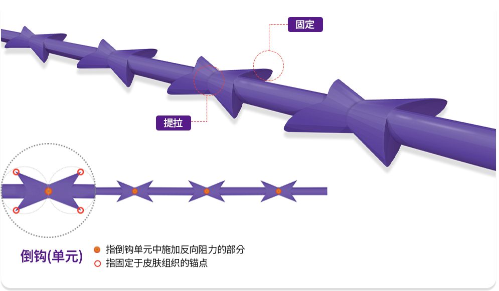 由于倒钩单元由多个锚定点组成仍可实现持久固定效果